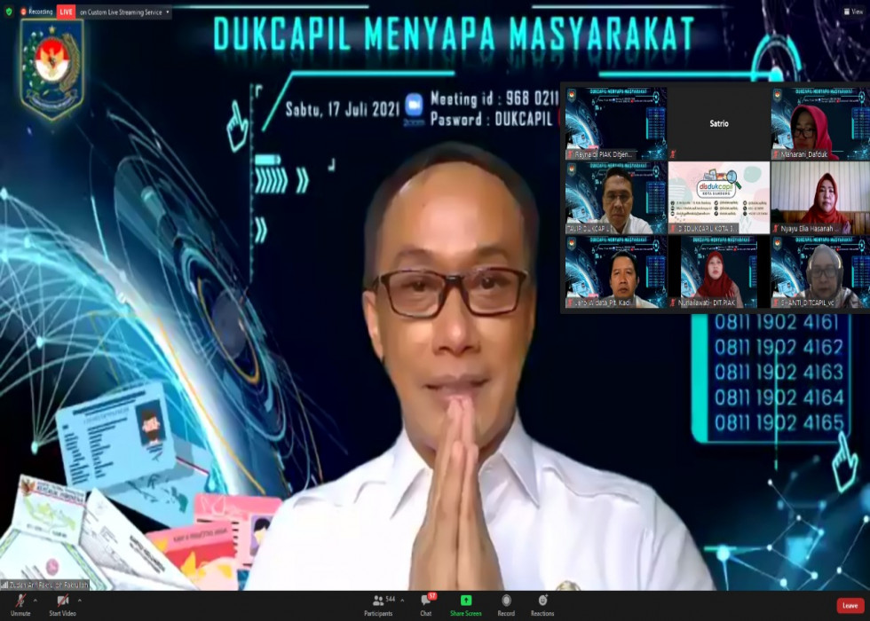 "Pelayanan Adminduk terus diperbaiki dan dimaksimalkan, termasuk membuka ruang dialog untuk memberi kesempatan kepada masyarakat untuk menyampaikan keluhan, masukan tentang layanan Dukcapil. Kalau masih ada layanan Dukcapil yang jelek, itu tanggung jawab saya sebagai Dirjen Dukcapil," kata Dirjen Dukcapil Kementerian Dalam Negeri, Prof. Zudan Arif Fakrulloh dalam forum virtual "Dukcapil Menyapa Masyarakat", Jakarta, Sabtu (17/7/2021).