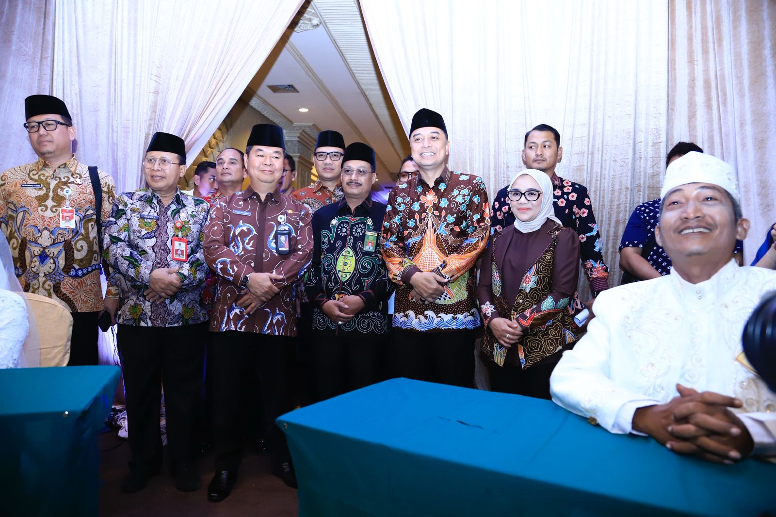 Uniknya, untuk enam pasangan pengantin baru dinikahkan dengan saksi-saksi istimewa, termasuk Wali Kota Surabaya Eri Cahyadi, Dirjen Dukcapil Teguh Setyabudi, Kepala Kantor Kementerian Agama Muhammad Muslim, Ketua Pengadilan Agama Suhartono, Kajari Ajie Prasetya, hingga perwakilan Forkopimda.