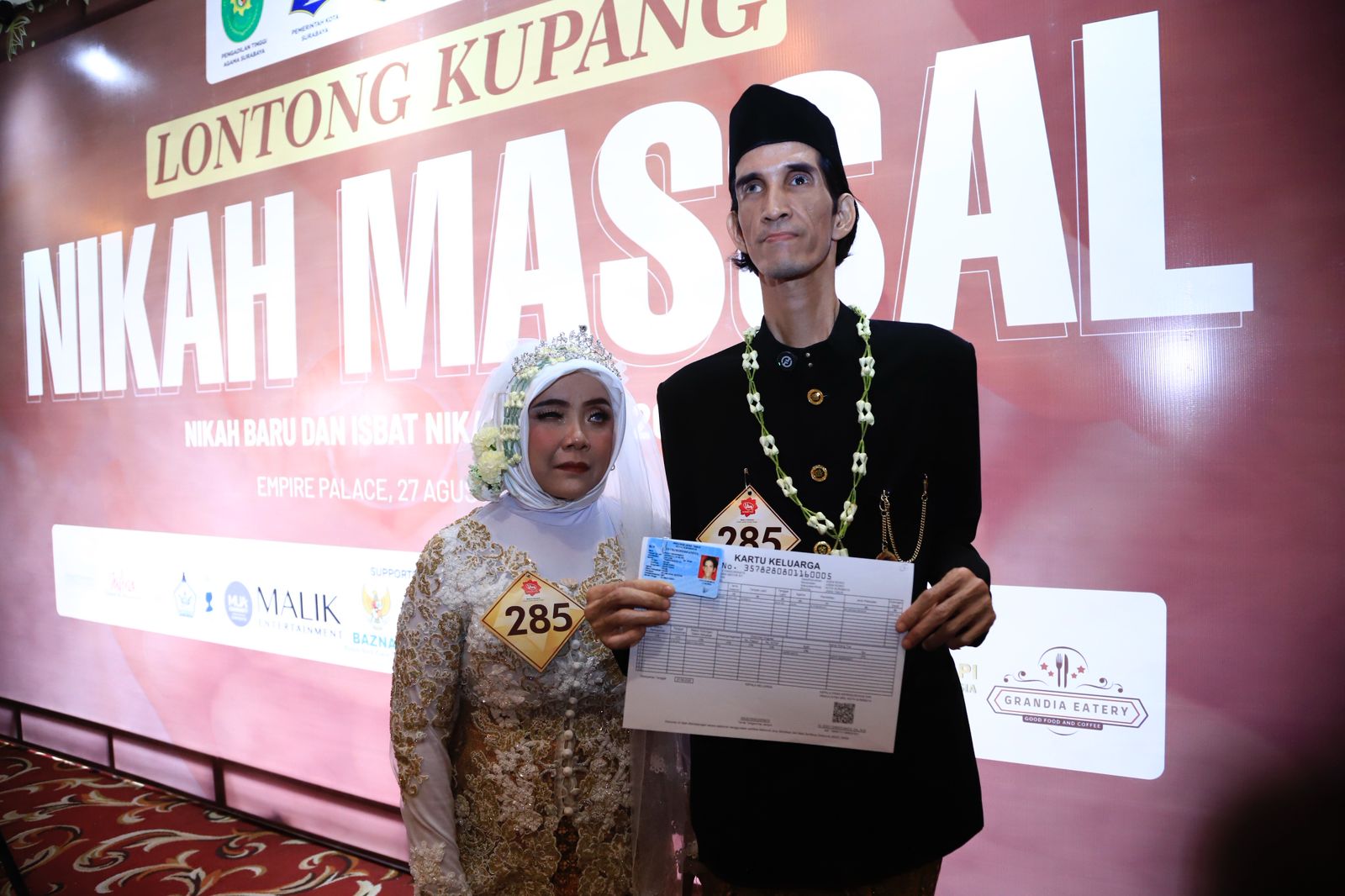 Surabaya — Pemerintah Kota (Pemkot) Surabaya berkolaborasi dengan Kementerian Agama (Kemenag) dan Pengadilan Agama Surabaya menggelar acara Isbat Nikah Massal di Ballroom The Empire Palace, Rabu (27/8/2025). Kegiatan ini menyatukan 285 pasangan, sebagian besar di antaranya merupakan pasangan yang sebelumnya menikah secara siri.