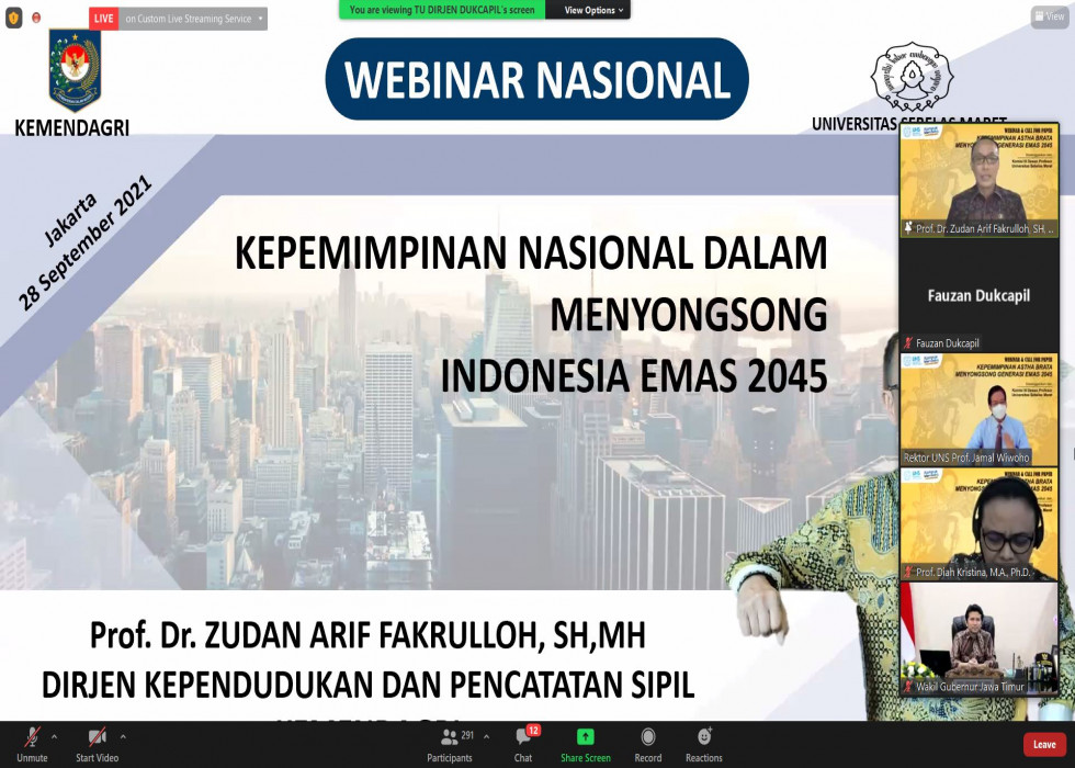 “Pertama, yaitu nilai dasar. Pemimpin masa depan harus dapat mewujudkan trusted society. Pemimpin juga harus memiliki skill komunikasi yang baik, dan harus cerdas” ujar Zudan di acara Webinar Kepemimpinan Astha Brata Menyongsong Generasi Emas 2045, Komisi III Dewan Professor UNS, pagi ini, Selasa (28/09/2021).