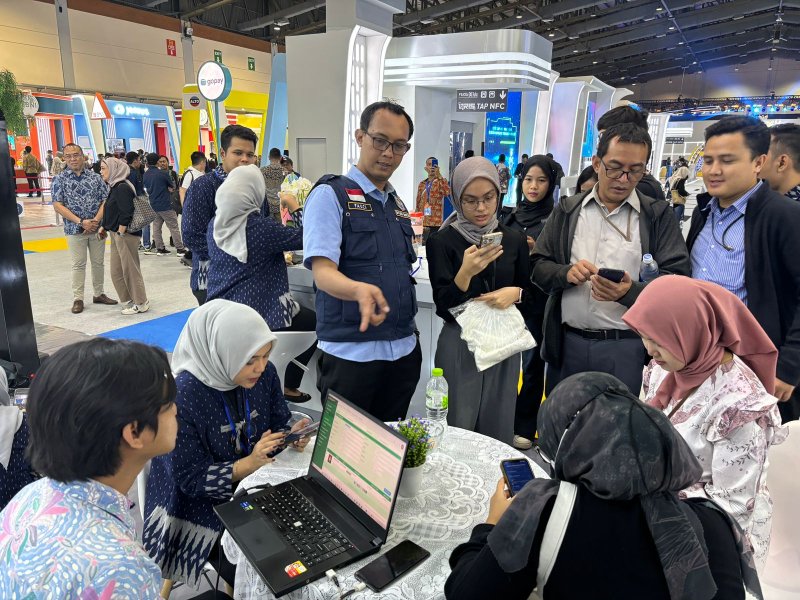 Pengunjung Festival Ekonomi Keuangan Digital (FEKDI) dan Karya Kreatif Indonesia menyemut di booth Kemenko Perekonomian untuk mengaktivasi IKD di ponsel mereka. (Foto: Dok Dafdukcapil)