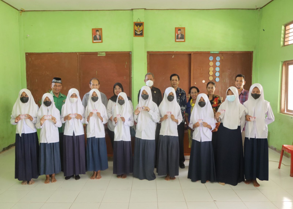 Dirjen Zudan mewakilkan penyerahan KIA kepada Madrasah Tsanawiyah Al Falah tersebut kepada Koordinator Wilayah V Ditjen Dukcapil, Diana Angraeni.