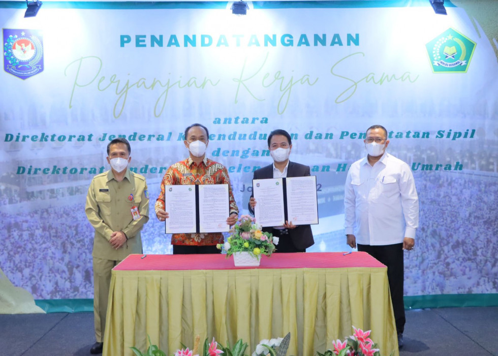 Jakarta - Ditjen Dukcapil Kementerian Dalam Negeri selalu berupaya membangun ekosistem yang kondusif untuk berbagi pakai data kependudukan. Kali ini giliran Ditjen Penyelenggaraan Haji dan Umroh (PHU) Kementerian Agama menandatangani Perjanjian Kerja Sama Pemanfaatan Data Kependudukan dengan Ditjen Dukcapil Kemendagri dalam penyelenggaraan pelayanan jamaah haji.