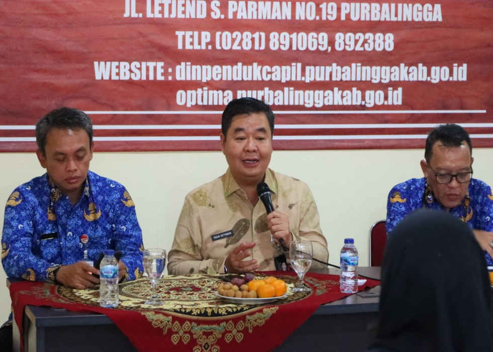 Dalam paparannya, Kadis Fathurahman menyatakan, Purbalingga ketiban berkah dengan kedatangan Dirjen Dukcapil Teguh Setyabudi yang hadir memberikan support untuk Disdukcapil Purbalingga.