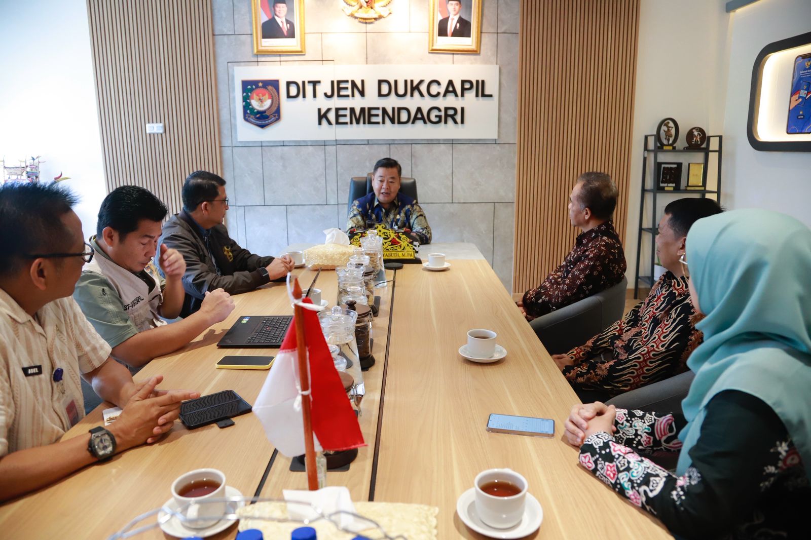Audiensi perkenalan dua kepala dinas yang baru untuk Disdukcapil Banyumas dan Disdukcapil Kota Depok ini dipimpin langsung oleh Dirjen Dukcapil Teguh Setyabudi, didampingi Direktur PIAK Muhammad Nuh Al Azhar, Kasubdit Keamanan Informasi Kependudukan, Mensuseno, dan Perencana Ahli Madya Direktorat IDKN, Adel Trilius beserta jajaran staf.