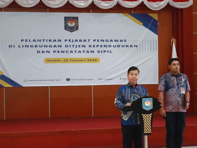 Jakarta — Direktorat Jenderal Kependudukan dan Pencatatan Sipil (Ditjen Dukcapil) Kementerian Dalam Negeri kembali melakukan rotasi dan penguatan organisasi melalui pelantikan empat Pejabat Pengawas. Acara pelantikan berlangsung di Gedung E lantai 1, kantor Ditjen Pemdes/Dukcapil, Jakarta, Kamis (22/1/2026).