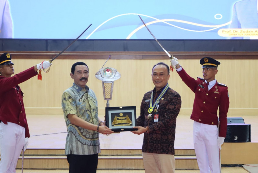 Sumedang - Dirjen Dukcapil Prof. Zudan Arif Fakrulloh kembali memperoleh penghargaan atas prestasi dan kinerja yang dinilai luar biasa. Penghargaan Kartika Asthabratha Madya Pamong Praja diserahkan langsung oleh Rektor Institut Pemerintahan Dalam Negeri (IPDN) Dr. Hadi Prabowo, dalam sebuah Upacara Pedang Pora.