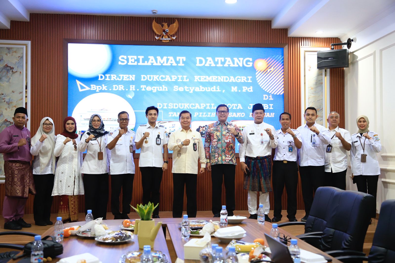 Pada kesempatan tersebut Dirjen Dukcapil didampingi Direktur Pendaftaran Penduduk dan Pencatatan Sipil Muhammad Farid. Keduanya disambut Wakil Wali Kota Jambi Diza Hazra Aljosha, Kadis Sosial Dukcapil Provinsi Jambi, Edy Kusmiran dan Kadis Dukcapil Kota Jambi, Nirwan Ilyas beserta jajaran.