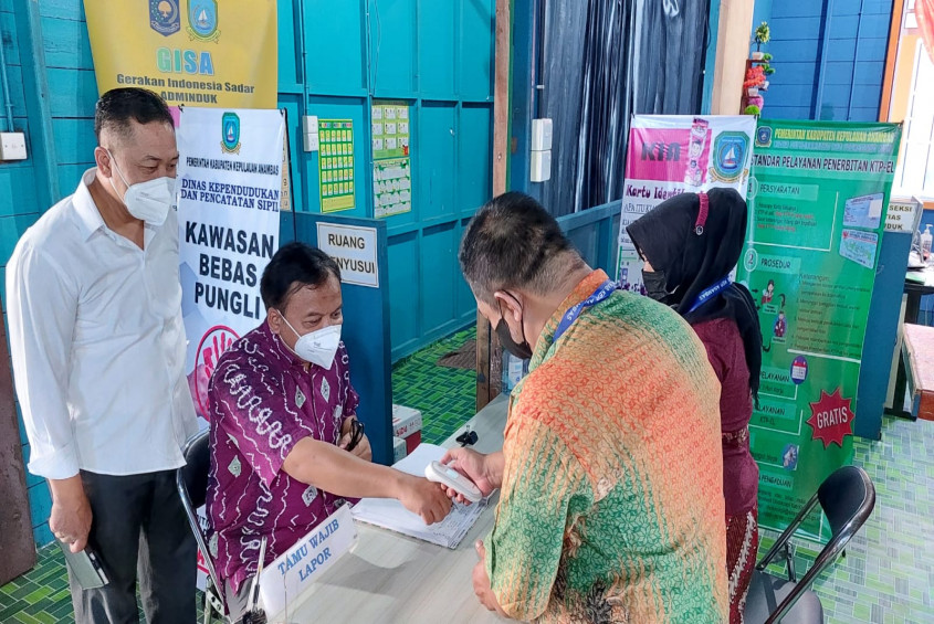 "Kami melayani 47.000 penduduk di 26 pulau dari 255 pulau yang ada. Target kinerja juga berhasil kami capai, Perekaman KTP-el, KIA maupun Akta Kelahiran," ujarnya.