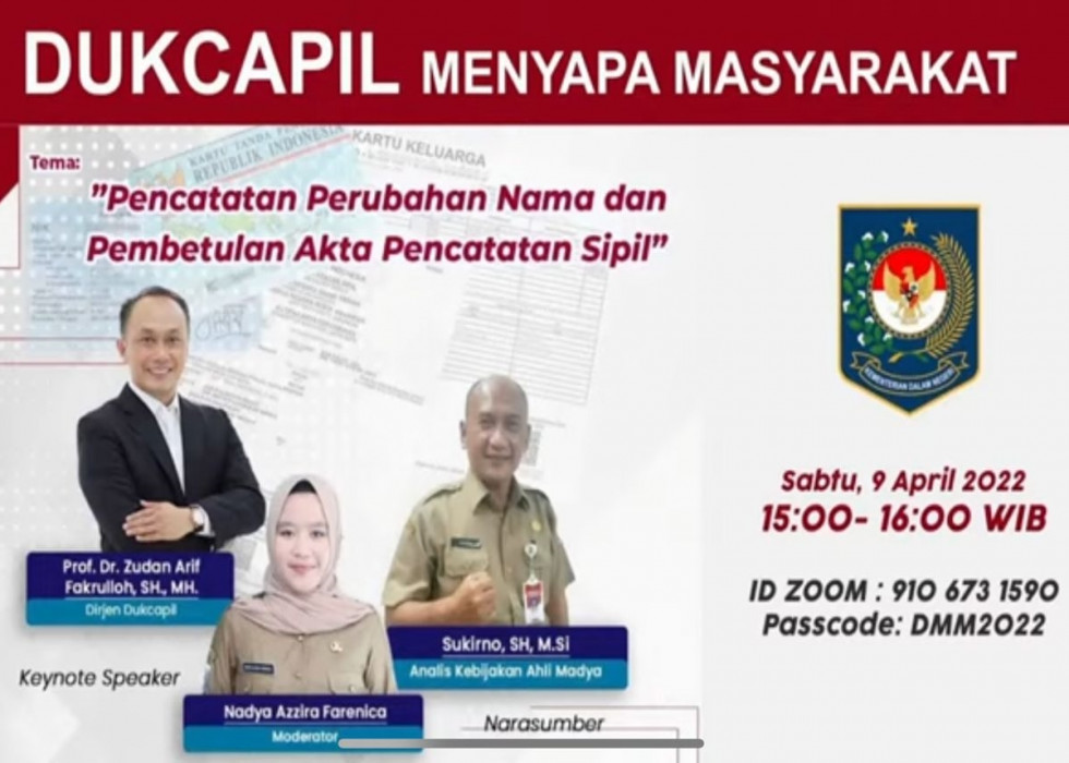 DMM edisi Ramadan mengangkat tema "Pencatatan perubahan nama dan pembetulan akta pencatatan sipil". Analis Kebijakan Ahli Madya Ditjen Dukcapil Sukirno, berkesempatan menjadi narasumber untuk menyampaikan materi tersebut.