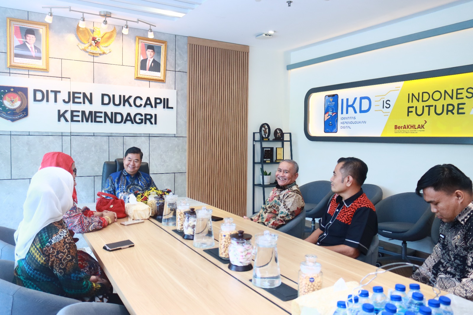 Jakarta — Wakil Wali Kota Solok, Suryadi Nurdal, melakukan audiensi dengan Dirjen Dukcapil Kementerian Dalam Negeri, Teguh Setyabudi, di kantor Ditjen Dukcapil, Jakarta, Kamis (22/1/2026). Pertemuan ini turut dihadiri Direktur Bina Aparatur Dukcapil (BAKPS) Erliani Budi Lestari, serta Direktur Integrasi Data Kependudukan Nasional (IDKN), Handayani Ningrum, yang juga putri asli kelahiran Kabupaten Solok.