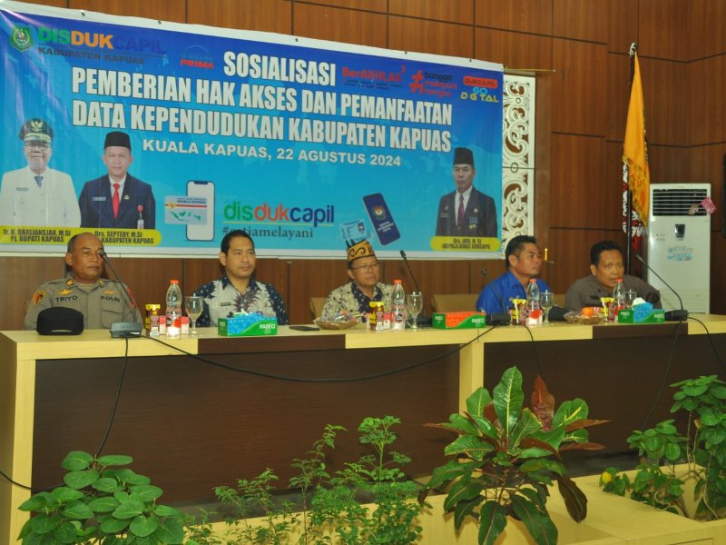 Kesadaran melayani Adminduk untuk membahagiakan masyarakat telah tertanam kuat di jiwa jajaran Dinas Dukcapil Kabupaten Kapuas seiring dengan kesadaran akan pentingnya menjaga kerahasiaan dan keamanan data kependudukan. Itulah inti dari kegiatan sosialisasi kebijakan administrasi kependudukan terkait pemberian hak akses dan pemanfaatan data kependudukan oleh Pemda Kapuas, di Kuala Kapuas, Kamis (22/8/2024).