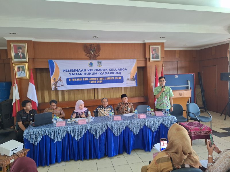 Analis Hukum Ahli Muda pada Setditjen Dukcapil Kemendagri, Rahman Hadianto pada forum Kelompok Keluarga Sadar Hukum (Kadarkum) di Kelurahan Tugu Utara, Jakarta Utara, Kamis (8/8/2024). [Foto: Dok. Tim Kerja PUU]