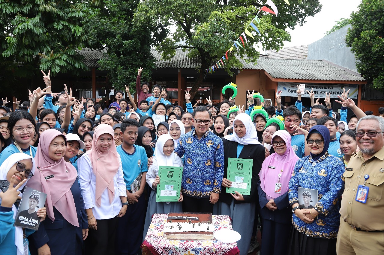 Menariknya, dalam kesempatan tersebut, Bima Arya juga merayakan ulang tahun bersama beberapa siswa dari SMKN 57 Jati Padang dan SMAN 34 Pondok Labu yang turut serta dalam acara penyerahan KTP-el.