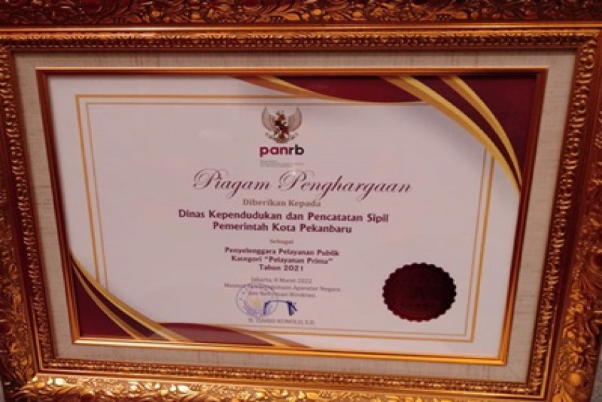 Menteri PANRB, Tjahjo Kumolo mengatakan, Dinas Dukcapil Kota Pekanbaru sudah dua kali berturut-turut mendapat predikat A ini sejak tahun 2020. Hal itu membuat Pemerintah Kota (Pemkot) Pekanbaru dianugerahi sebagai Pembina Pelayanan Publik Kategori Pelayanan Prima Lingkup Pemerintah Daerah Tahun 2021.
