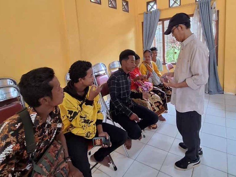 Ketua Tim Jebol Ditjen Dukcapil di Kabupaten Tebo, Yusnaini (kanan) menyerahkan KTP-el pemilih pemula untuk 5 anggota keluarga Suku Anak Dalam, dengan kepala keluarga, yakni Bendiding (paling kiri berbaju batik). [Foto: Dok. Dit. Dafdukcapil]
