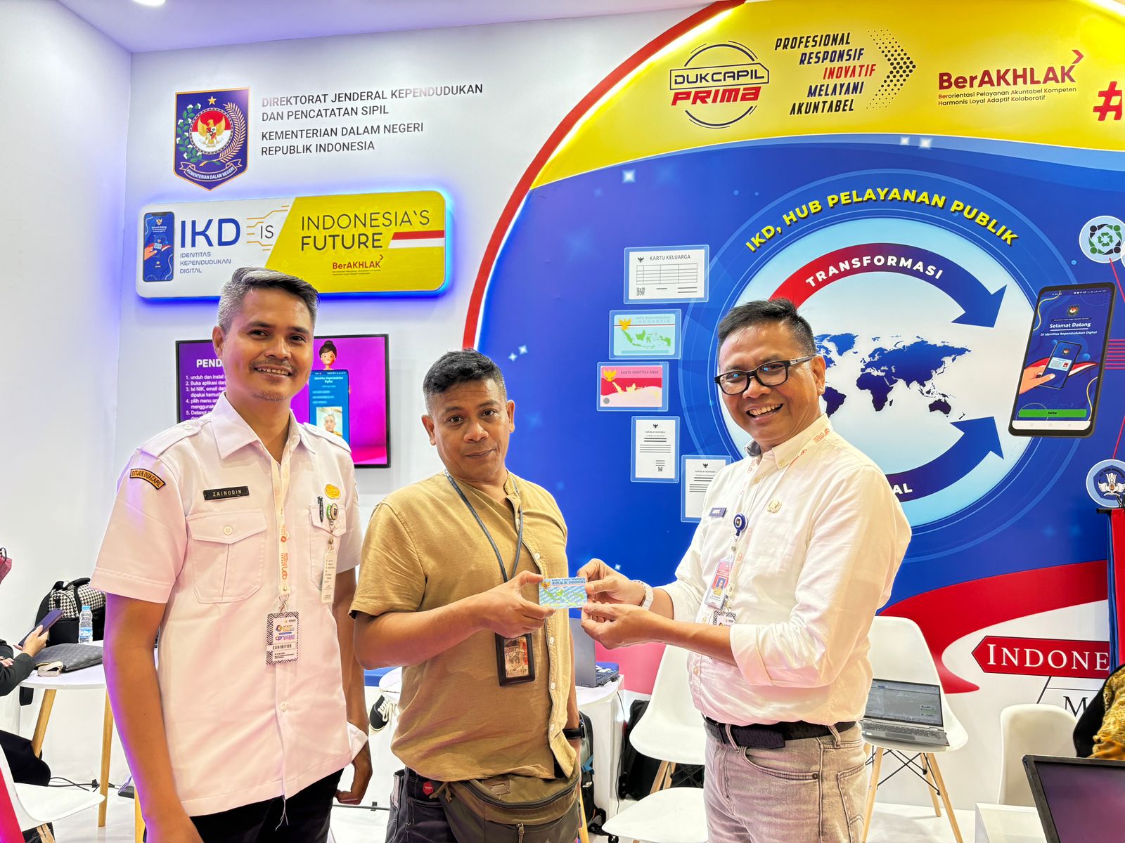 Pengunjung yang berdatangan dari seluruh Indonesia itu, dilayani petugas Ditjen Dukcapil pusat dan Dinas Dukcapil provinsi DKI Jakarta, untuk mengaktivasi Identitas Kependudukan Digital (IKD) di telepon selular yang berbasis Android atau pun IoS.