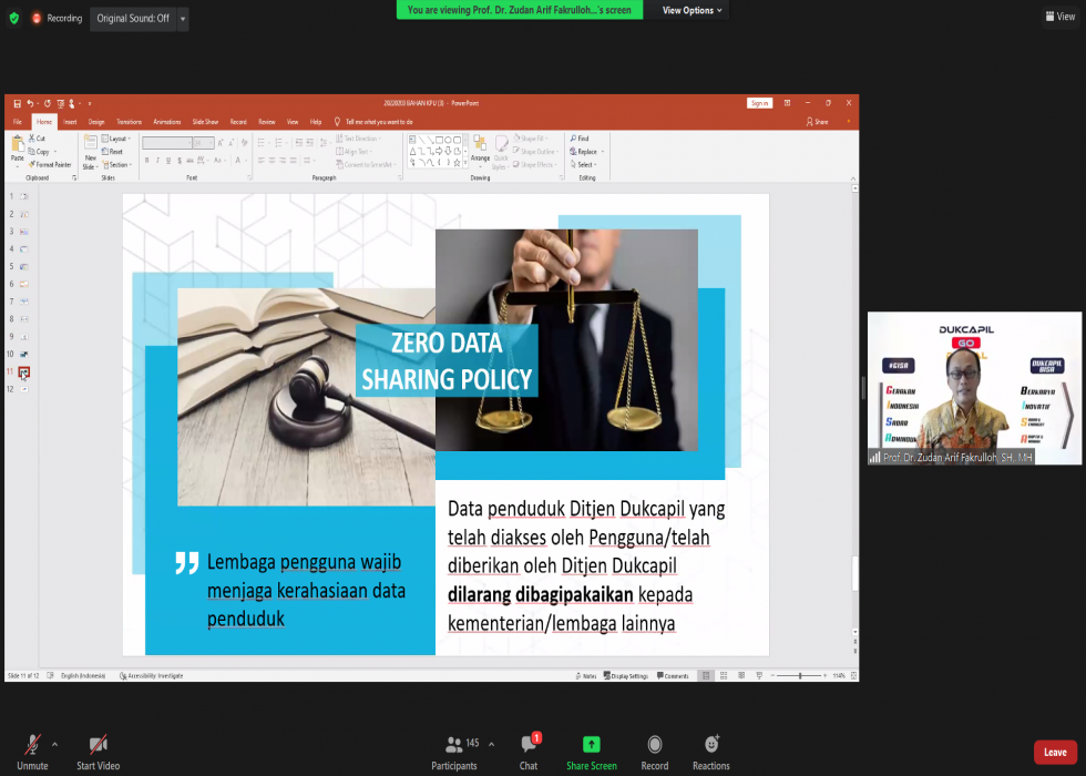"Ini yang sangat penting tentang kebijakan yang ada dalam UU Adminduk No. 24 Tahun 2013 yang disebut dengan 'Zero data sharing policy'," tegas Dirjen Zudan dalam Rapat Forum Koordinasi Nasional Pemutakhiran Data Pemilih Berkelanjutan Semester II Tahun 2021 via daring, Kamis (3/2/2022)..