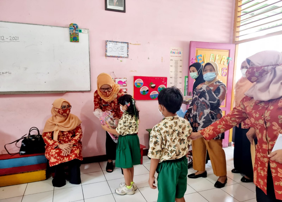 Tidak berakhir sampai di situ, kunjungan kemudian dilanjutkan ke SD Pertiwi, dan dilakukan dengan protokol kesehatan seperti memakai masker dan menjaga jarak.