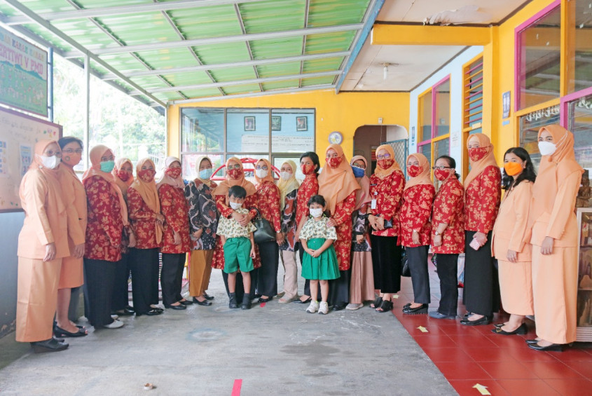 Ibu-ibu DWP itu berkesempatan bertemu dengan kepala sekolah serta para guru baik TK maupun SD Pertiwi.