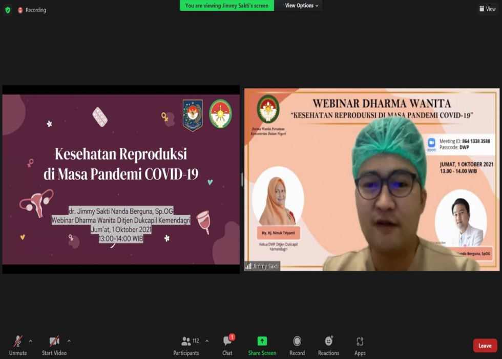 "Misalnya, urgensi masyarakat untuk mendatangi fasilitas pelayanan KB dimasa pandemik menurun sehingga masyarakat yang ikut dalam program KB juga menurun," kata Ketua DWP Ditjen Dukcapil Ny. Ninuk Triyanti Zudan dalam sambutannya pada webinar Kesehatan Reproduksi di Era Pandemi Covid-19 melalui zoom di Jakarta, Jumat (1/10/2021).