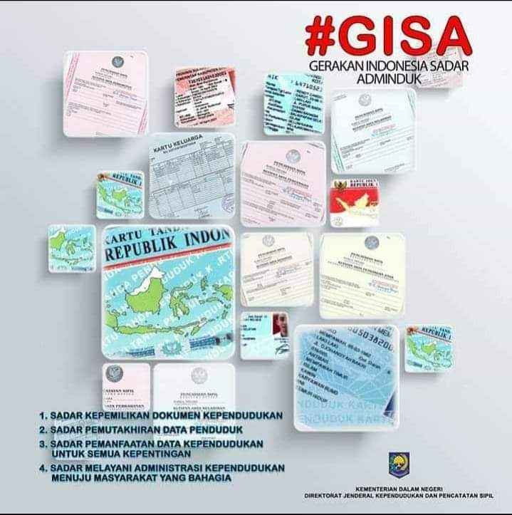 Ada 4 tujuan GISA, yaitu sadar kepemilikan dokumen kependudukan, sadar pemutakhiran data kependudukan, sadar pemanfaatan data kependudukan untuk semua urusan, dan sadar pelayanan Adminduk yang membahagiakan masyarakat. Dukcapil***