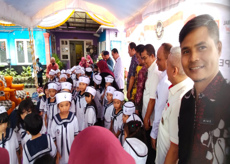 Ketua Gugus Tugas GIT Armed Wijaya menyerahkan penghargaan Aksi Nyata Peningkatan Perilaku Tertib Adminduk serta dana santunan. Sementara Asdep Revolusi Mental Kemenko Bidang PMK Kartiman Kartowiyowo berkenan menyerahkan KIA secara simbolis kepada murid TK Hang Tuah.
