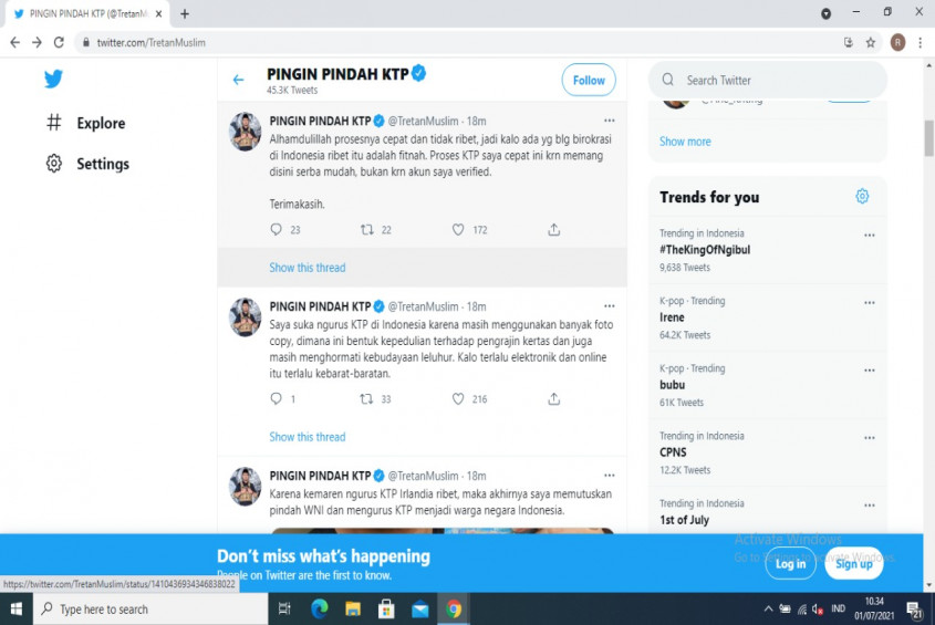 "Alhamdulillah prosesnya cepat dan tidak ribet, jadi kalo ada yg blg birokrasi di Indonesia ribet itu adalah fitnah. Proses KTP saya cepat ini krn memang disini serba mudah, bukan krn akun saya verified. Terimakasih."