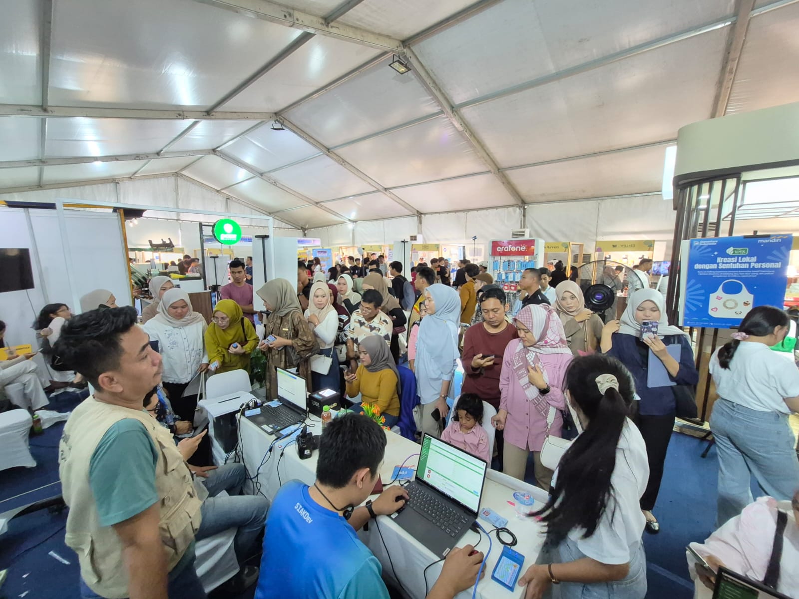 Seperti tahun-tahun sebelumnya, Bank Mandiri menyediakan booth khusus bagi Dukcapil untuk melayani registrasi IKD sekaligus layanan adminduk lainnya. Tim teknis Gerakan Indonesia Sadar Adminduk (GISA) Ditjen Dukcapil Kemendagri dan Dinas Dukcapil Kota Palembang dengan sabar dan cermat melayani antusiasme masyarakat yang terlihat menyemuti booth layanan Administrasi Kependudukan sejak hari pertama.