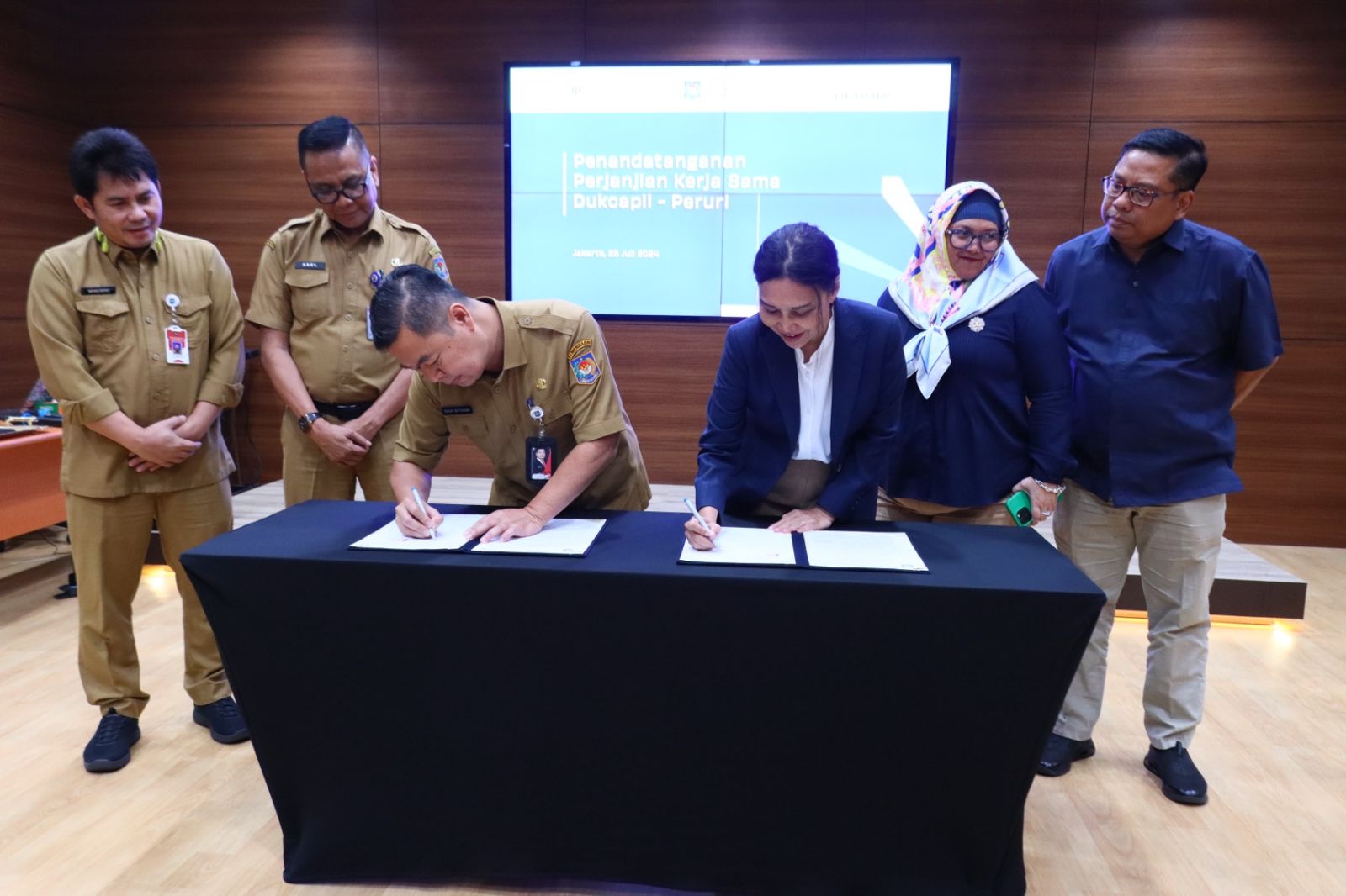 Jakarta - Ditjen Dukcapil Kementerian Dalam Negeri mengokohkan kerja sama terkait pemanfaatan data kependudukan dengan Perusahaan Umum Percetakan Uang Republik Indonesia (Peruri).