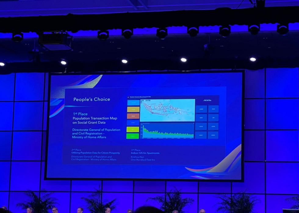 Kali ini pada ESRI User Conference 2022, Ditjen Dukcapil Kemendagri berhasil menduduki posisi Pertama dan Kedua dalam kategori People Choice's.