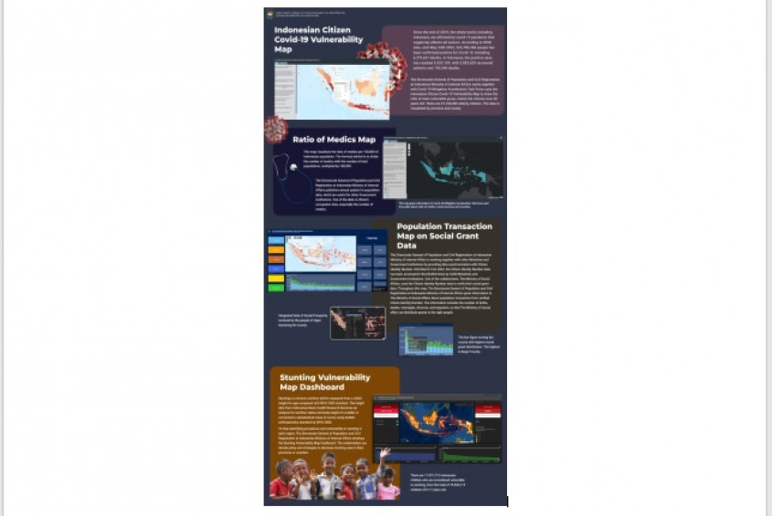 "Untuk posisi pertama, yaitu Interactive Maps berupa Peta Data Terpadu Kesejahteraan Sosial (DTKS). Posisi kedua Static Maps/poster yang terdiri dari Peta Penduduk Rentan Covid, Peta Rasio Jumlah Tenaga Kesehatan, Peta Rasio Kerentanan Stunting, dan Peta Data Terpadu Kesejahteraan Sosial (DTKS)," papar Dirjen Zudan.