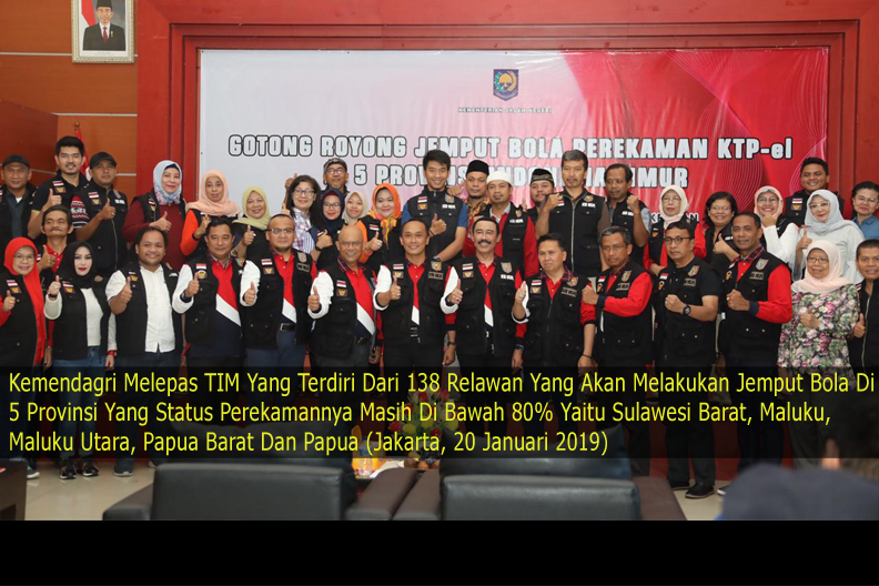 Jakarta - Kemendagri melepas 138 anggota Tim Gotong Royong Percepatan Pelayanan KTP-el Wilayah Indonesia timur yang tersebar di lima provinsi, yaitu Sulawesi Barat, Maluku, Maluku Utara, Papua, dan Papua Barat. Dukcapil***