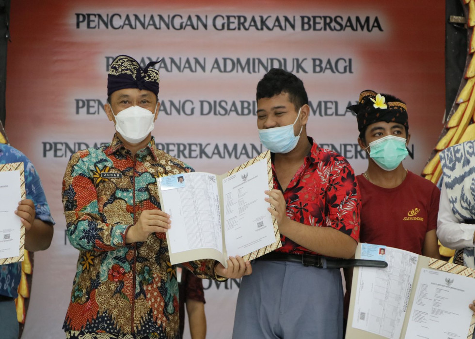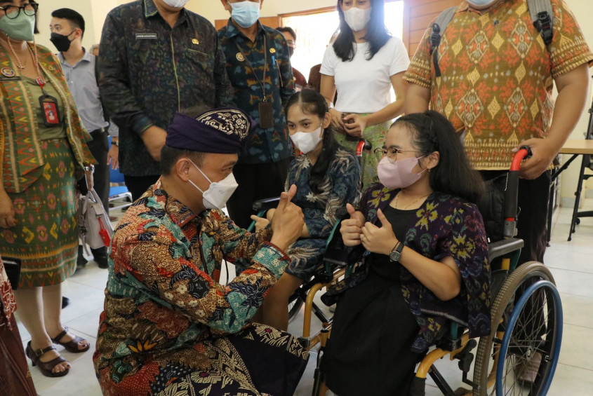 Denpasar - Pencanangan Gerakan Bersama Pelayanan Penyandang Disabilitas kini telah sampai di Provinsi Bali, NTT dan NTB. Acara yang digelar di SLB 1 Badung, Bali, hari ini Jumat (22/4/2022), dihadiri langsung oleh Dirjen Dukcapil Zudan Arif Fakrulloh serta Staf Khusus Presiden Angkie Yudistia.