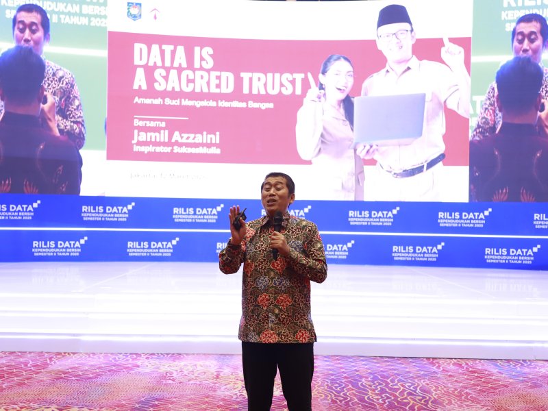Jakarta — Usai merilis Data Kependudukan Bersih (DKB) Semester II Tahun 2025, Ditjen Dukcapil Kemendagri menghadirkan tokoh inspirator nasional, Jamil Azzaini dalam sebuah kajian motivasi di Birawa Assembly Hall, Hotel Bidakara, Kamis (12/3/2026) sore menjelang berbuka puasa.