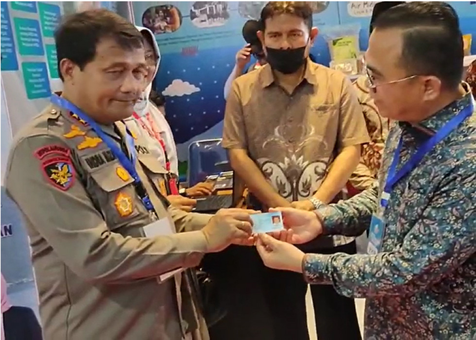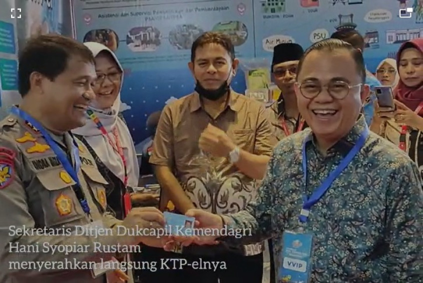 Sekretaris Ditjen Dukcapil Hani Syopiar Rustam menyerahkan langsung KTP-el yang baru kepada Irjen Pol. Indra Miza di sela-sela tour Sail Tidore Expo 2022 bersama para menteri dan pimpinan lembaga.