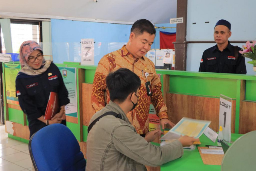 Semarang - Dirjen Dukcapil Teguh Setyabudi melakukan kunjungan kerja meninjau pelayanan administrasi kependudukan ke Dinas Dukcapil Kabupaten Semarang, Jumat (23/6/2023). Di kantor Disdukcapil Kabupaten Semarang ini, Dirjen Teguh sempat menyapa beberapa masyarakat yang sedang menunggu hasil layanan adminduk.