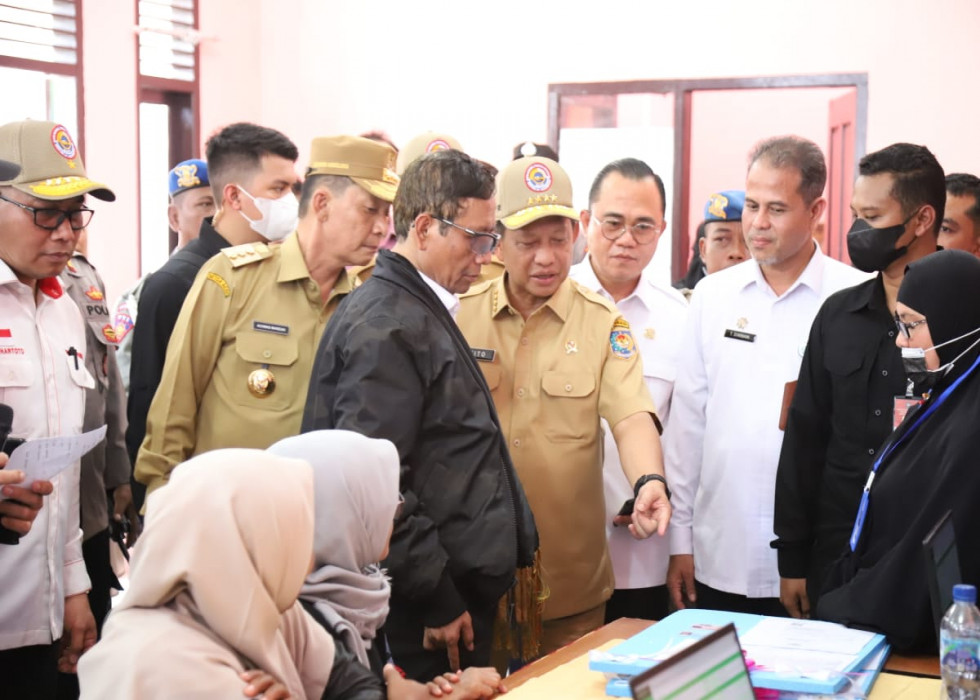 Hari pertama Kunker, usai mengunjungi Pulau Rondo, rombongan Menko Polhukam dan Mendagri mengunjungi dan mengecek pelayanan administrasi kependudukan (Adminduk) di Kecamatan Sukajaya, Kota Sabang, Rabu (21/12/2022) siang.
