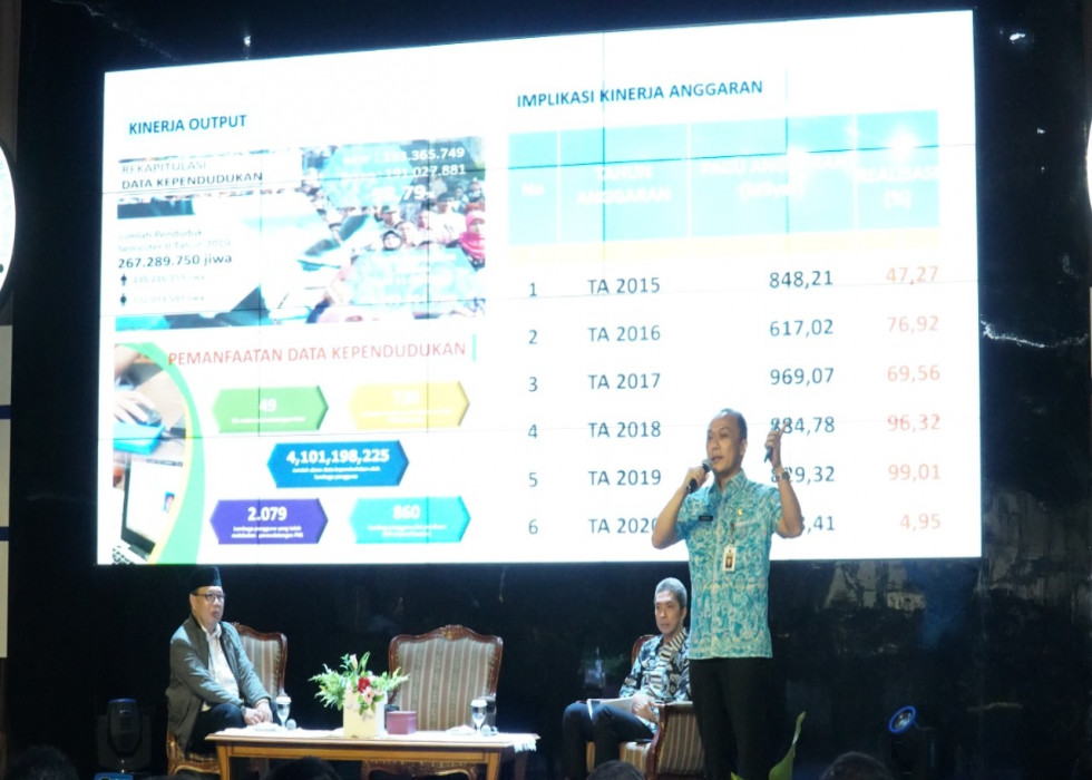 Berikutnya pemanfaatan data kependudukan. Sudah ada 2.079 lembaga yang bekerja sama mengakses data Dukcapil yang memuat data 267 juta penduduk. Semuanya masing-masing terdiri dari 31 elemen data.