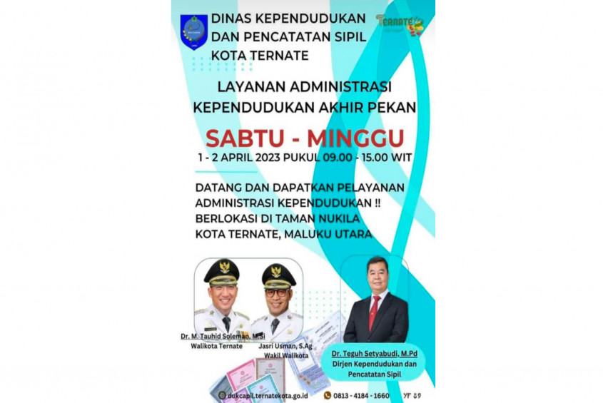 Ternate - Sibuk bekerja dan tidak ada waktu untuk datang ke kantor Dinas Dukcapil bukan lagi jadi alasan warga Ternate tidak punya KTP-el. Pasalnya, Dukcapil setempat hadir memberikan pelayanan hari Sabtu dan Minggu (weekend) di Taman Nukila.