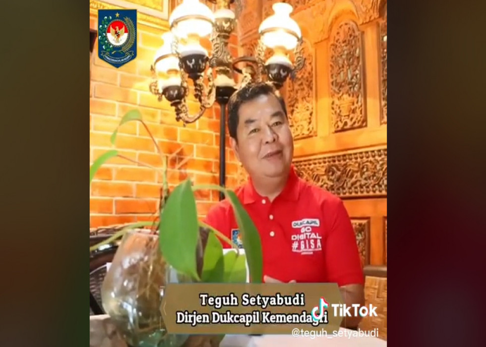 Jakarta - Dirjen Dukcapil Teguh Setyabudi tak mau ketinggalan mengedukasi masyarakat tentang layanan Adminduk lewat jejaring sosial TikTok dengan akun @teguh_setyabudi. Teguh memang terbilang pemain baru dalam platform video asal Tiongkok ini. Ia lebih banyak bersosialisasi lewat IG @teguh_setyabudi.