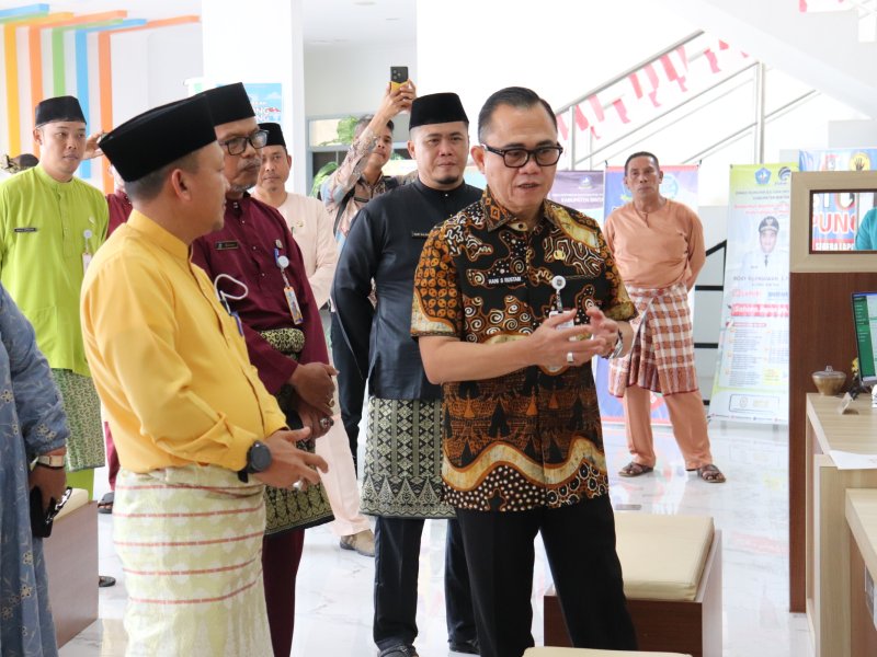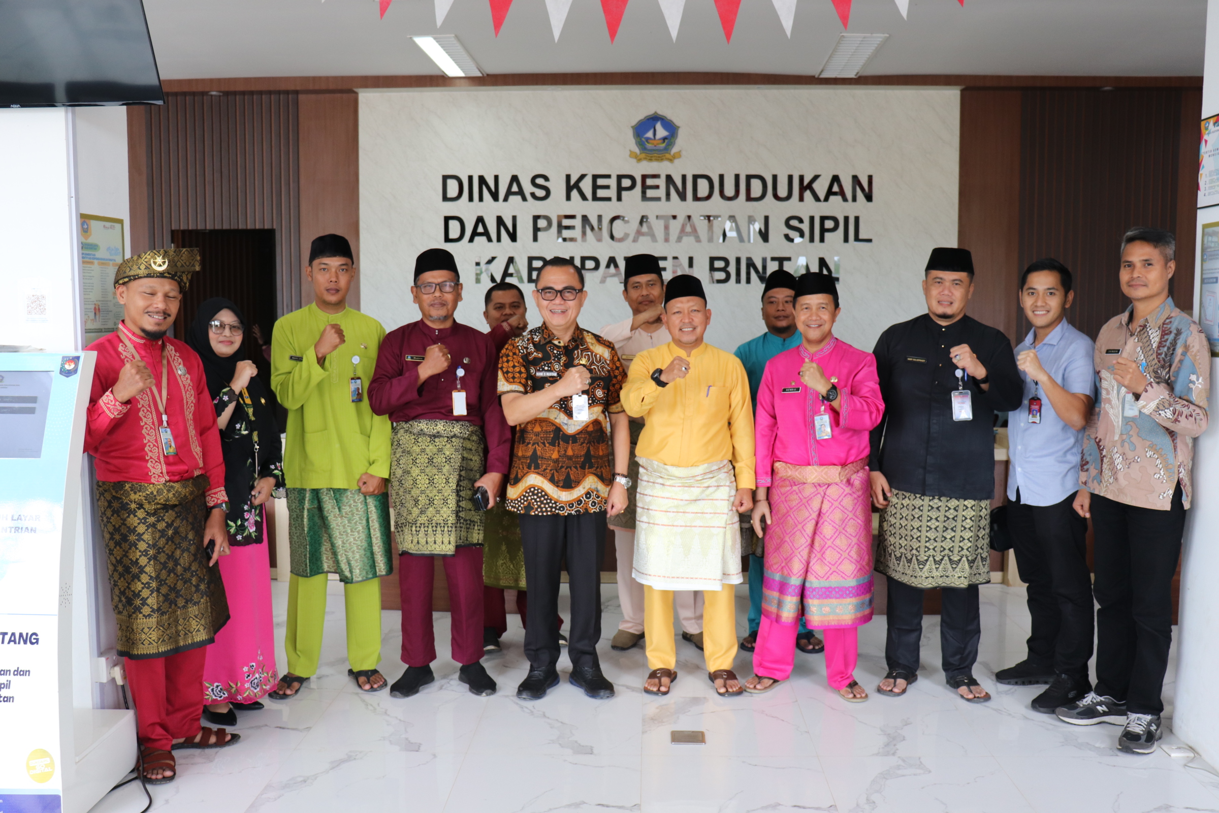 Sesditjen Dukcapil Hani Syopiar Rustam didampingi Kepala Dinas Dukcapil Kabupaten Bintan, Rusli meninjau ruang pelayanan dan berdialog dengan petugas. Lawatan Sesditjen Dukcapil Hani Syopiar Rustam ke Kepri mengusung misi koordinasi perluasan (scaling up) Inovasi KIPP 2025. (Foto: Dukcapil/Andrie)