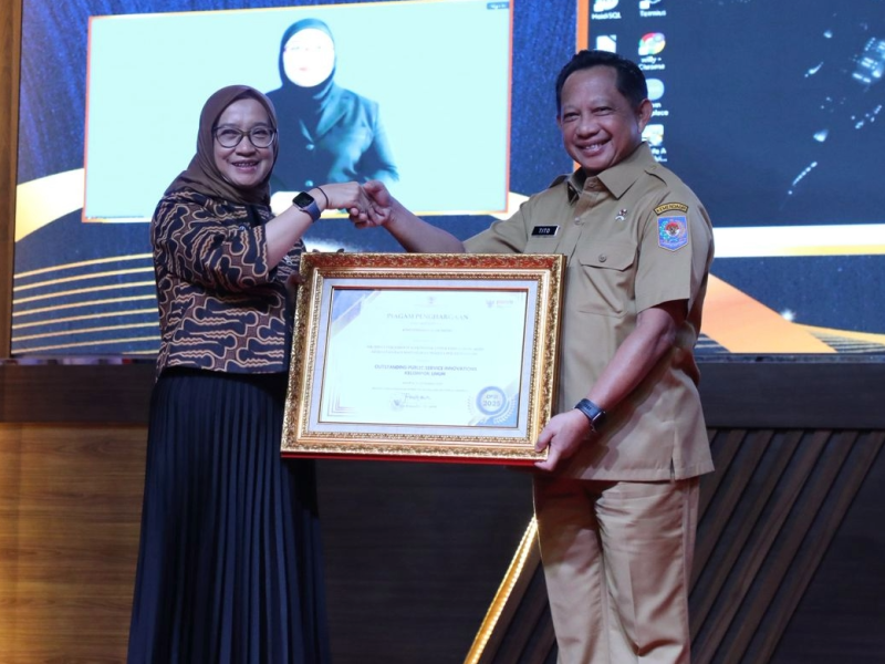 Mendagri Tito Karnavian menerima penghargaan OPSI KIPP tahun 2025 diserahkan secara langsung oleh Menteri PANRB Rini Widyantini. (Foto: Dukcapil/Lukman)