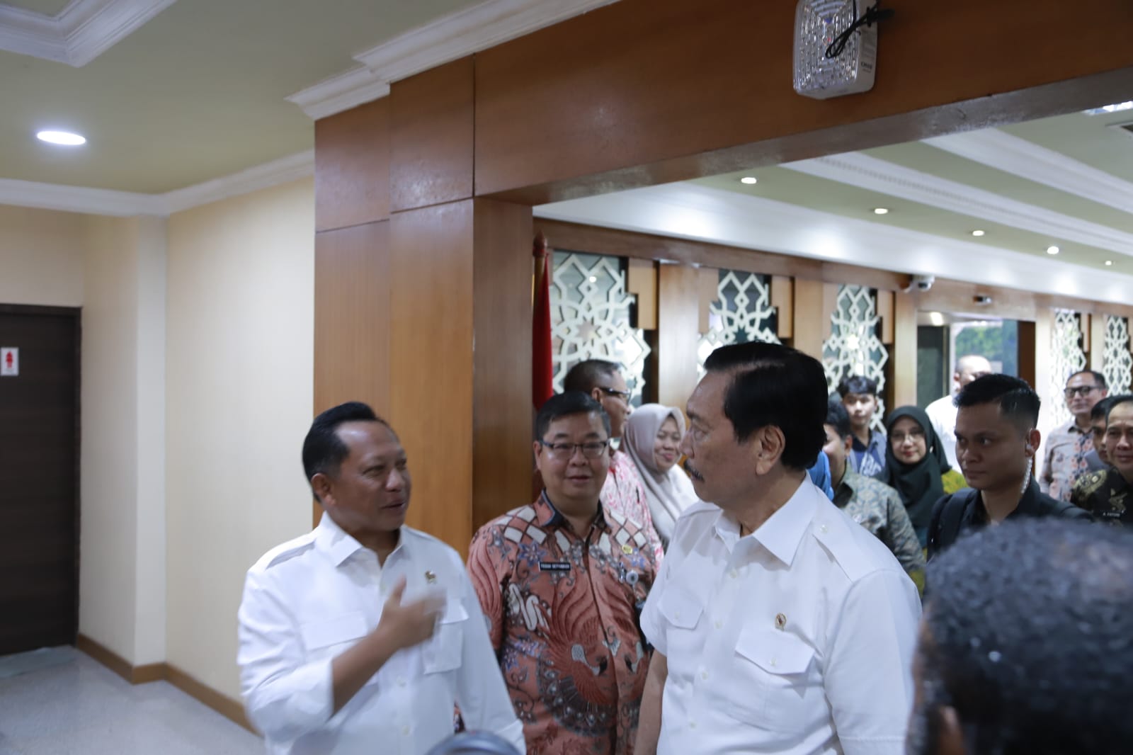 Rapat juga dihadiri pimpinan Kementerian/Lembaga (K/L) antara lain Ketua Dewan Ekonomi Nasional/Ketua Komite Percepatan Transformasi Digital Pemerintah (PTDP) Luhut Binsar Panjaitan, Menteri PANRB Rini Widyantini, Menteri PPN/Bappenas Rachmat Pambudy, Kepala BPS Amalia Adininggar Widyasanti, Sekjen Kemensos Robben Rico, Dirjen Teknologi Pemerintahan Digital Kementerian Komunikasi Digital (Komdigi) Mira Tayyiba; Bupati Banyuwangi Ipuk Fiestiandani, dan undangan penting lainnya.