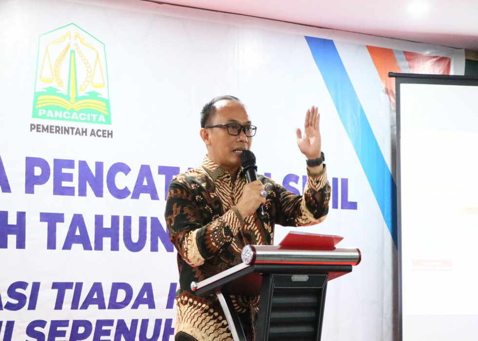 Banda Aceh - Ada bagian yang sangat menarik dari amanat Dirjen Dukcapil Zudan Arif Fakrulloh dalam forum Raker Pencatatan Sipil se-Provinsi Aceh Tahun 2023 bertema: Inovasi Tiada Henti Melayani Sepenuh Hati, di Banda Aceh, Selasa (7/3/2023).