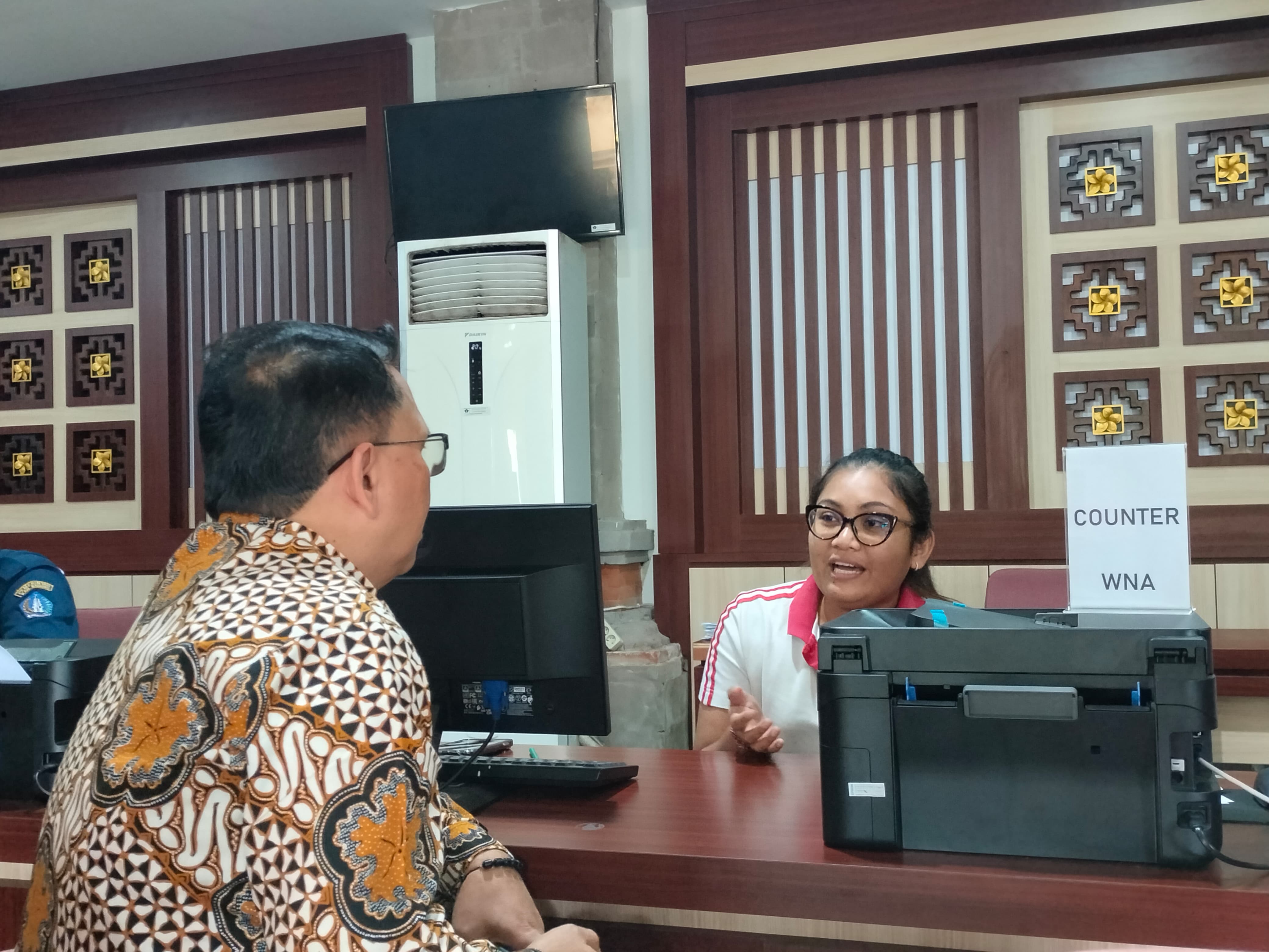 Badung - Dukcapil terus memastikan layanan dokumen kependudukan dapat diakses dengan mudah, cepat dan gratis bagi seluruh penduduk Indonesia, termasuk bagi Orang Asing (OA) yang ada di Indonesia. Kali ini, Direktur Dafdukcapil Akhmad Sudirman Tavipiyono atau yang akrab disapa Tavip memantau langsung layanan OA di Dinas Dukcapil Kabupaten Badung, Jum'at (20/12/2024).
