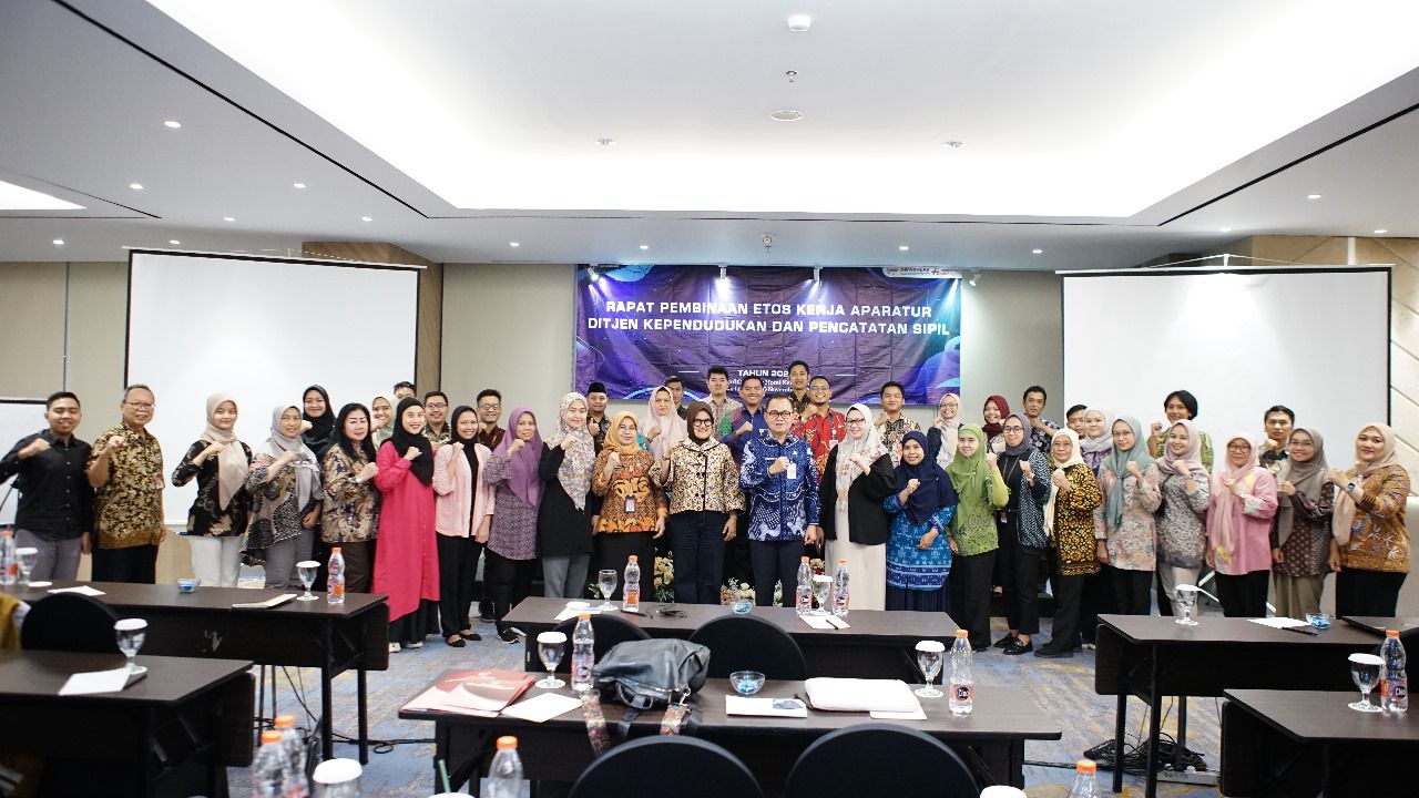 Plh. Dirjen Dukcapil Handayani Ningrum didampingi Sesditjen DUkcapil Hani Syopiar Rustam saat membuka Pembinaan Etos Kerja Aparatur Ditjen Dukcapil. (Foto: Dukcapil/Lukman)