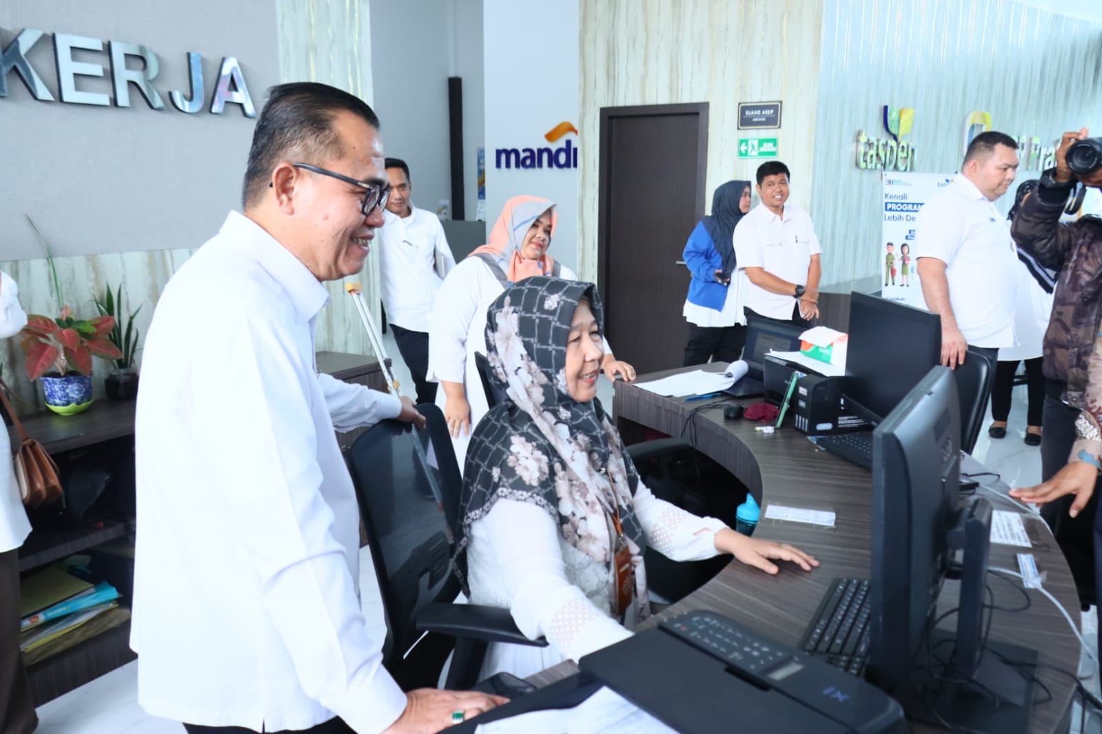 Bukittinggi - Penjabat Sementara (Pjs) Wali Kota Bukittinggi, Hani Syopiar Rustam di hari pertama bekerja berkunjung ke Mal Pelayanan Publik (MPP) Kota Bukittinggi. Kunjungan ini disambut oleh Kepala Dinas Penanaman Modal dan Pelayanan Terpadu Satu Pintu (DPMPTSP), Ahda Hidayat beserta jajaran di kantor MPP Kota Bukittinggi yang megah, Rabu (25/9/2024).