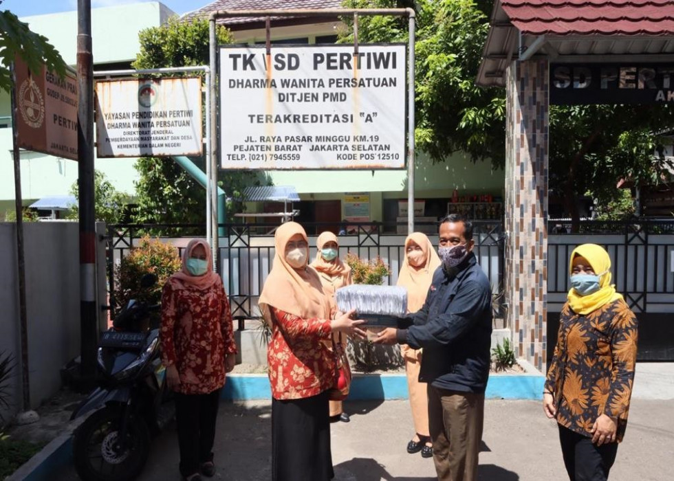 Jakarta - Dharma Wanita Persatuan Direktorat Jenderal Kependudukan dan Pencatatan Sipil Kementerian Dalam Negeri (DWP Ditjen Dukcapil Kemendagri) menggelar kegiatan Bakti Sosial (Bansos) berupa pembagian masker dan hand sanitizer. Kegiatan ini dilakukan dalam rangka memperingati Hari Ulang Tahun DWP yang ke-21.
