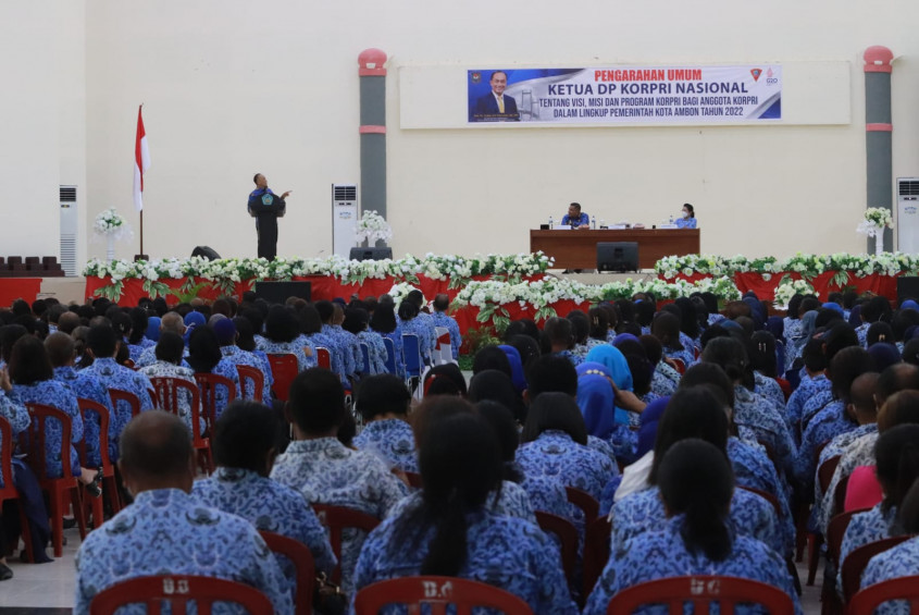 Demikian disampaikan Ketua Umum Dewan Pengurus Korpri Nasional Prof. Zudan Arif Fakrulloh di depan ribuan ASN anggota Korpri Provinsi Ambon mengikuti Pengarahan Umum Ketum Korpri di aula Universitas Pattimura, Jumat (20/5/2022).